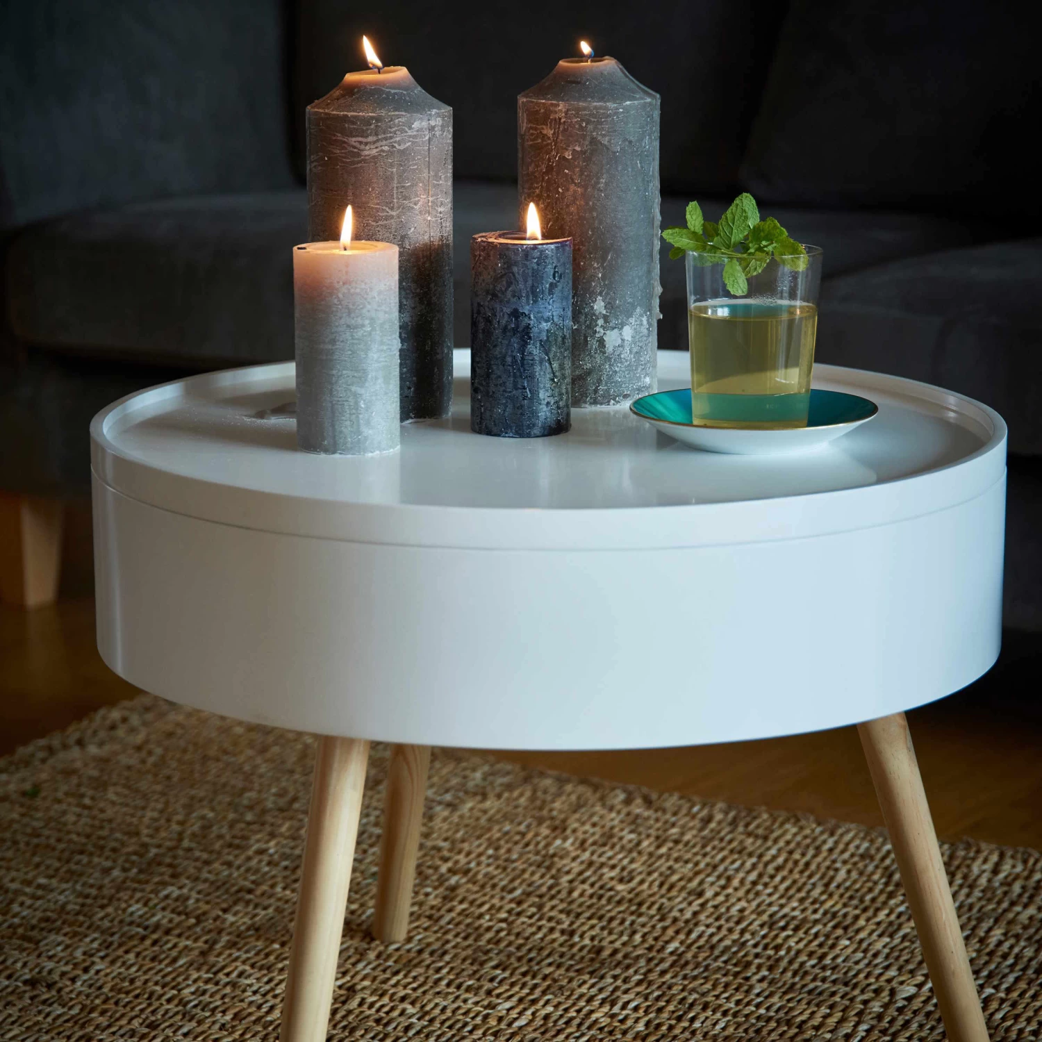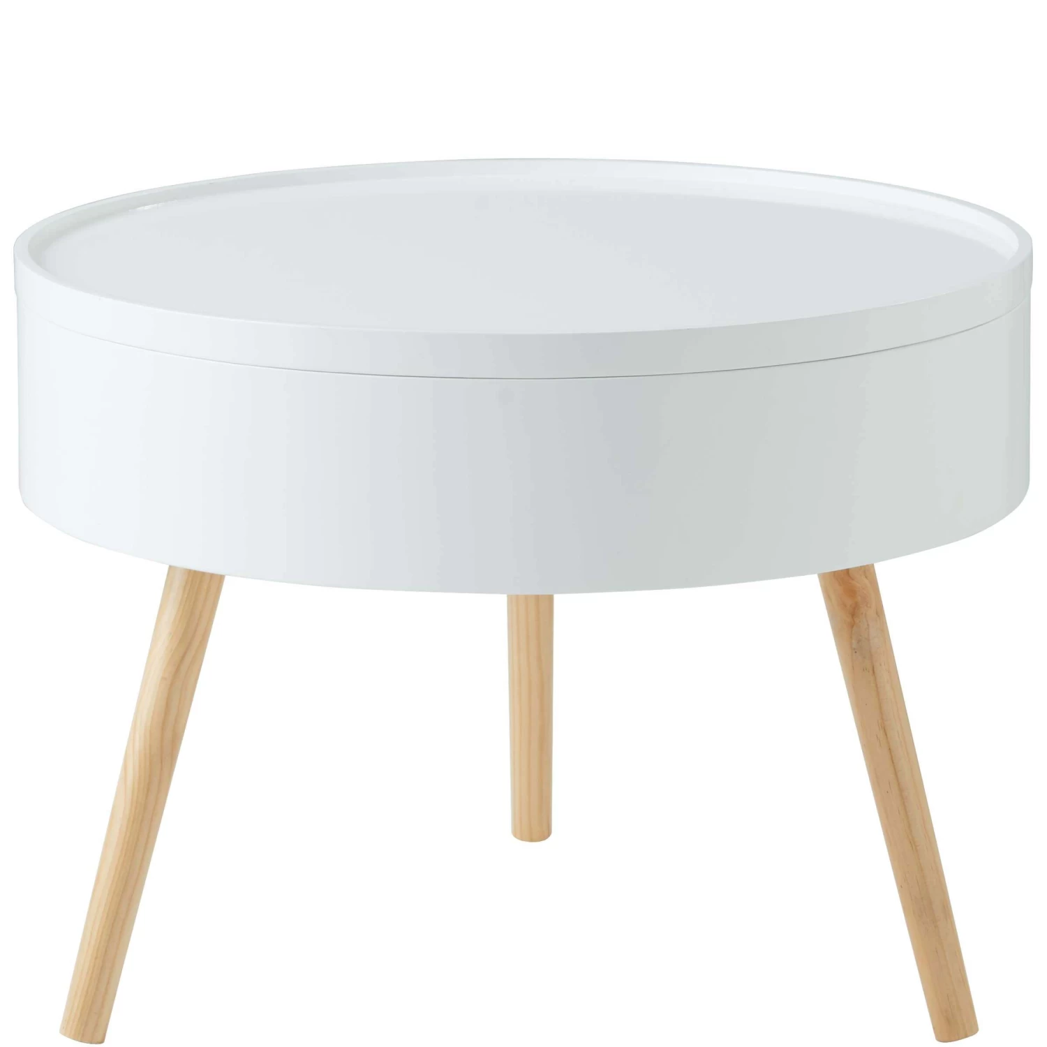 Tisch und Stauraum in einem: Unser komfortabler Coffee Time-Beistelltisch dient Ihnen als schönes Möbelstück mit Ablagefläche und verfügt gleichzeitig über ein platzsparendes wie praktisches Aufbewahrungssystem. Dazu einfach die Tischplatte entfernen. Und schon lassen Sie Zeitschriften, Fernbedienung oder Strickzeug in ihm verschwinden. Für genügend Stabilität sorgen die schrägen Tischbeine aus Pinienholz. Durch die Verwendung heller Farben und klarer Linien erinnert er an skandinavisches Design, was ihn zum zeitgemäßen, stylischen Wohnstück macht.