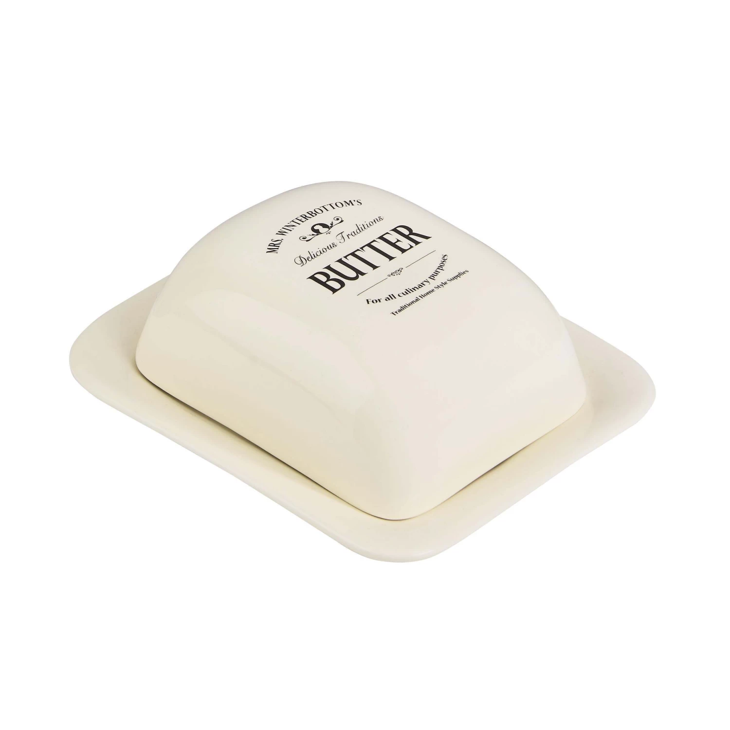 Die Butterdose: Traditioneller geht es kaum. In schlichtem Creme-Weiß und mit einem Hauch von Vintage Flair steht die Keramikdose unserer Mrs. Winterbottom’s Serie klassisch auf dem Frühstückstisch zu frischen Brötchen, duftendem Kaffee, Marmelade, Aufstrich und Orangensaft. Auf dem gedeckten Tisch darf die Aufbewahrungsdose nicht fehlen und bietet sich mit ihrer abgerundeten Form und dem passenden Deckel auch als schönes Accessoire in Küche und Esszimmer an.