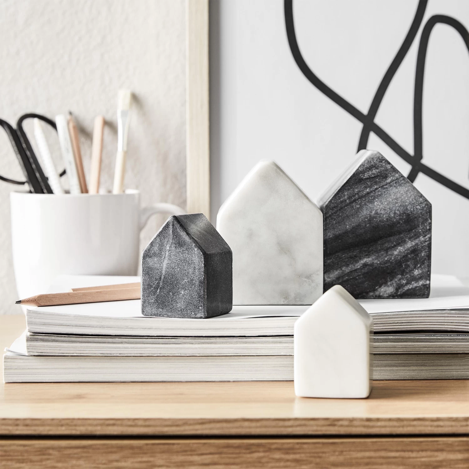 Marmor-Dekorationen auf dem gedeckten Tisch, einem Deko-Tablett oder