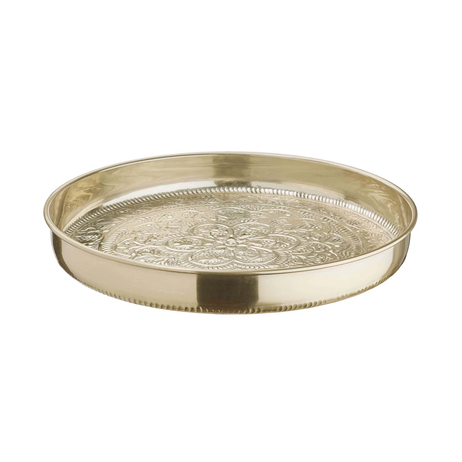 Mit traditioneller Hammerschlag-Optik und 46 cm Durchmesser setzt das Oriental Lounge Deko-Tablett aus Eisen ein schimmerndes Zeichen auf Ihrem Tisch oder Ihrer Anrichte, z. B. geschmückt mit Kugeln, Tannenzapfen oder Kerzen.