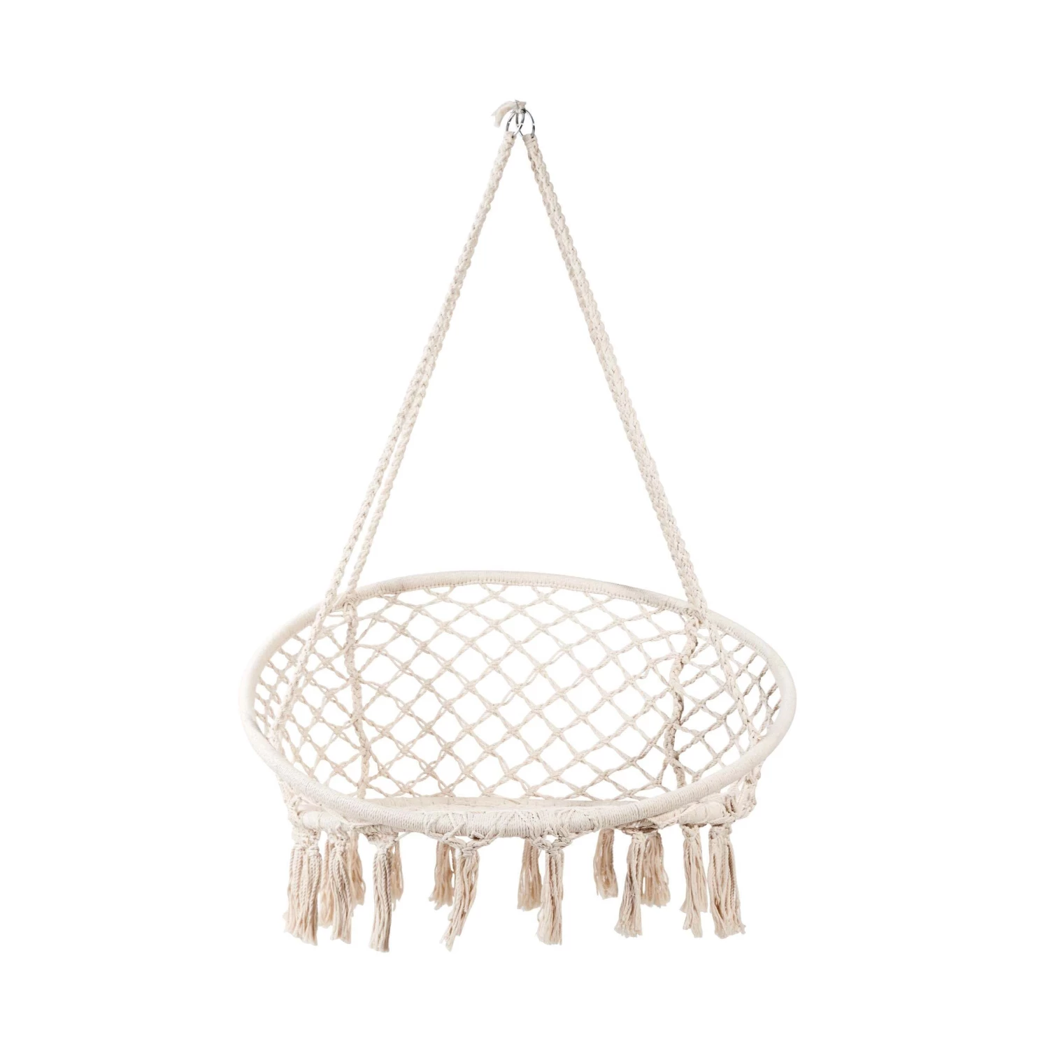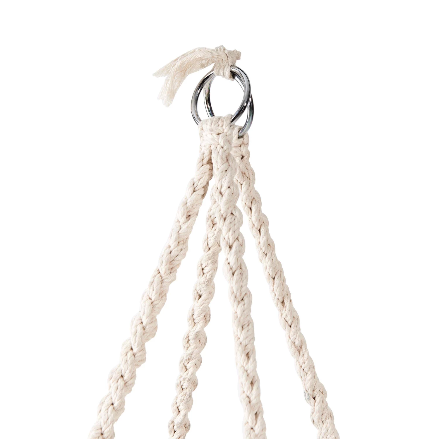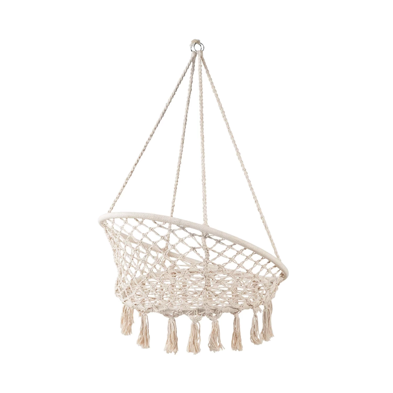 – Der Sitz zum Aufhängen ist aus heller Baumwolle, Polyester und Stahl.