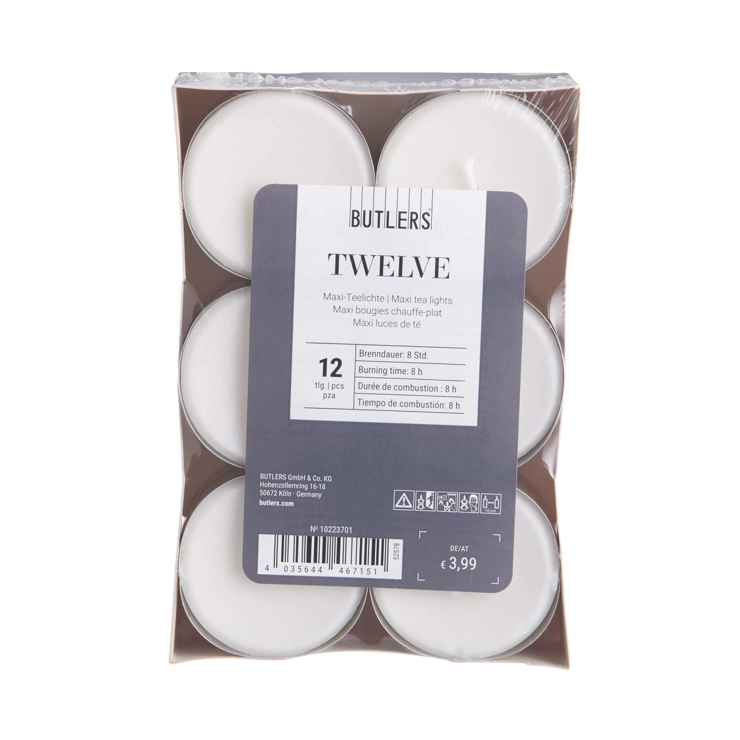 Kerzenhalter: Ø 10 cm, Höhe 10 cm, Kerze: 12 Stück, Ø 5,7 cm, Höhe 1,9 cm