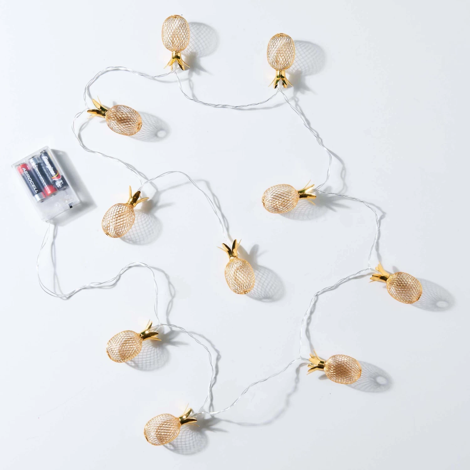 Sie machen sich das Leben bunter und vergnügter mit der Miami LED Lichterkette „Ananas“ mit USB-Batteriefach. Da leuchten Ihnen 10 goldene Früchte in glänzender-Optik batteriebetrieben entgegen, z. B. in der Küche, im Bad oder als Party-Dekoration.