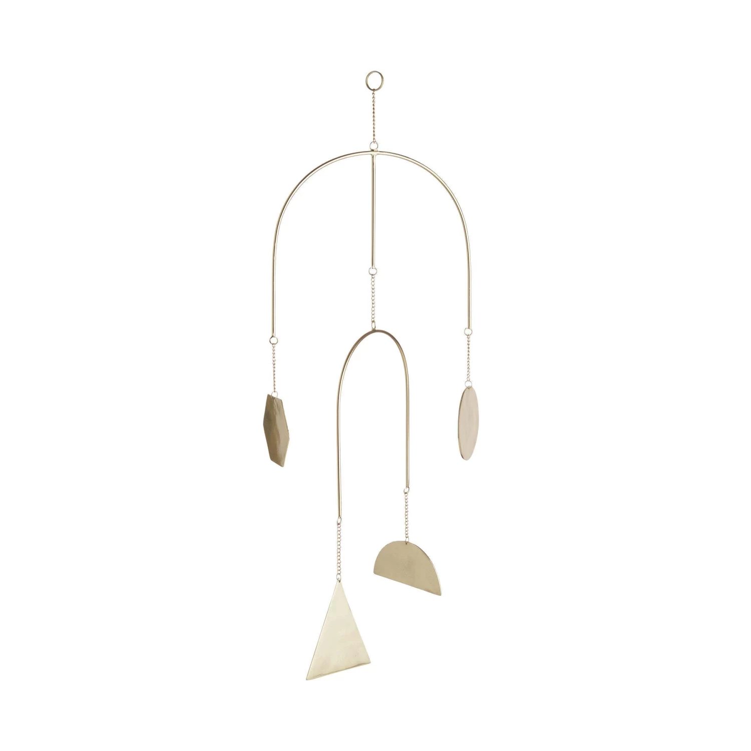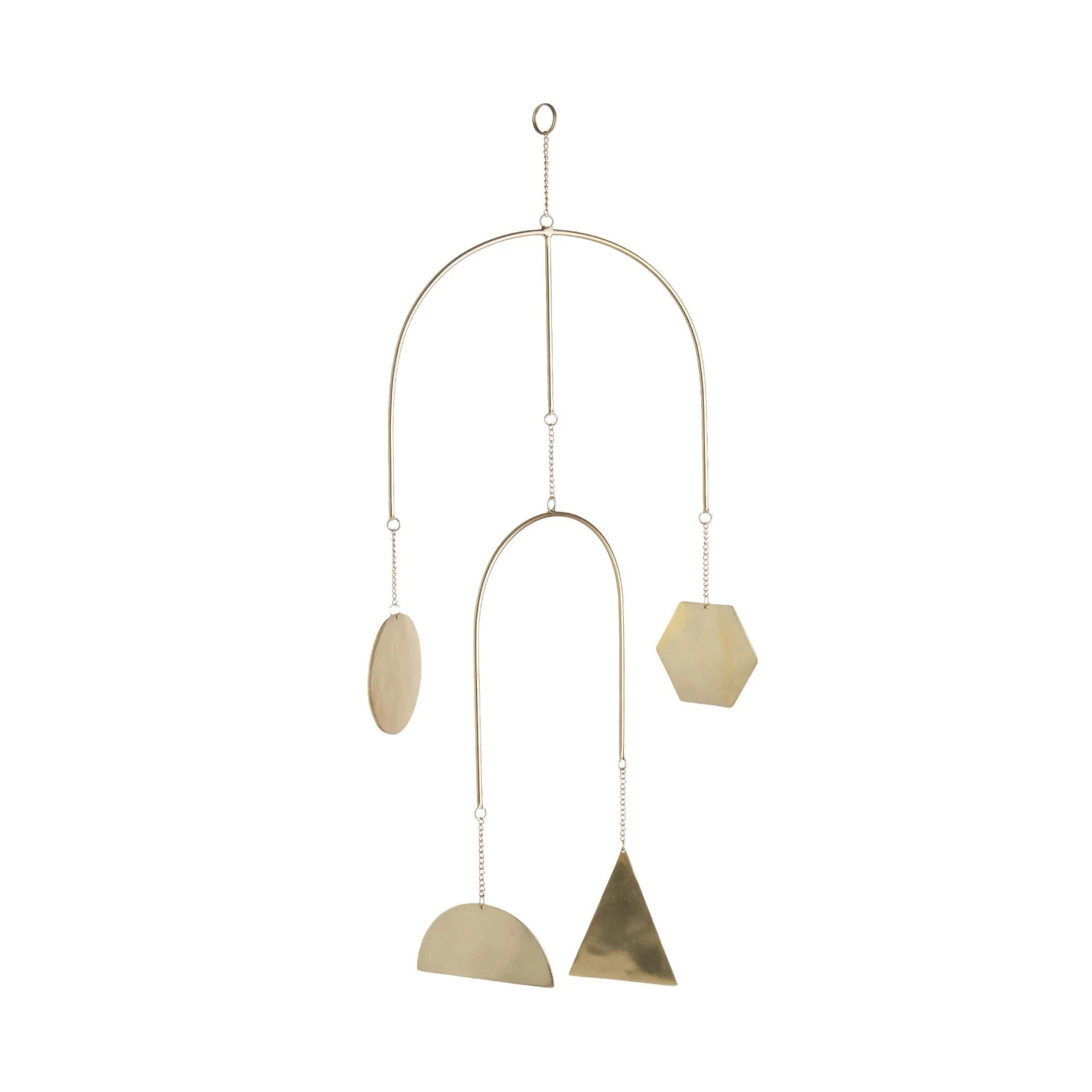 Sie genießen meditative Momente, während Sie in aller Ruhe dem goldfarbenen Peaceful Home Mobile aus Eisen und Aluminium zuschauen. Seine 4 Ornamente bewegen sich sanft im Luftzug, und bei diesem dekorativen Anblick vergessen Sie alles um sich herum.