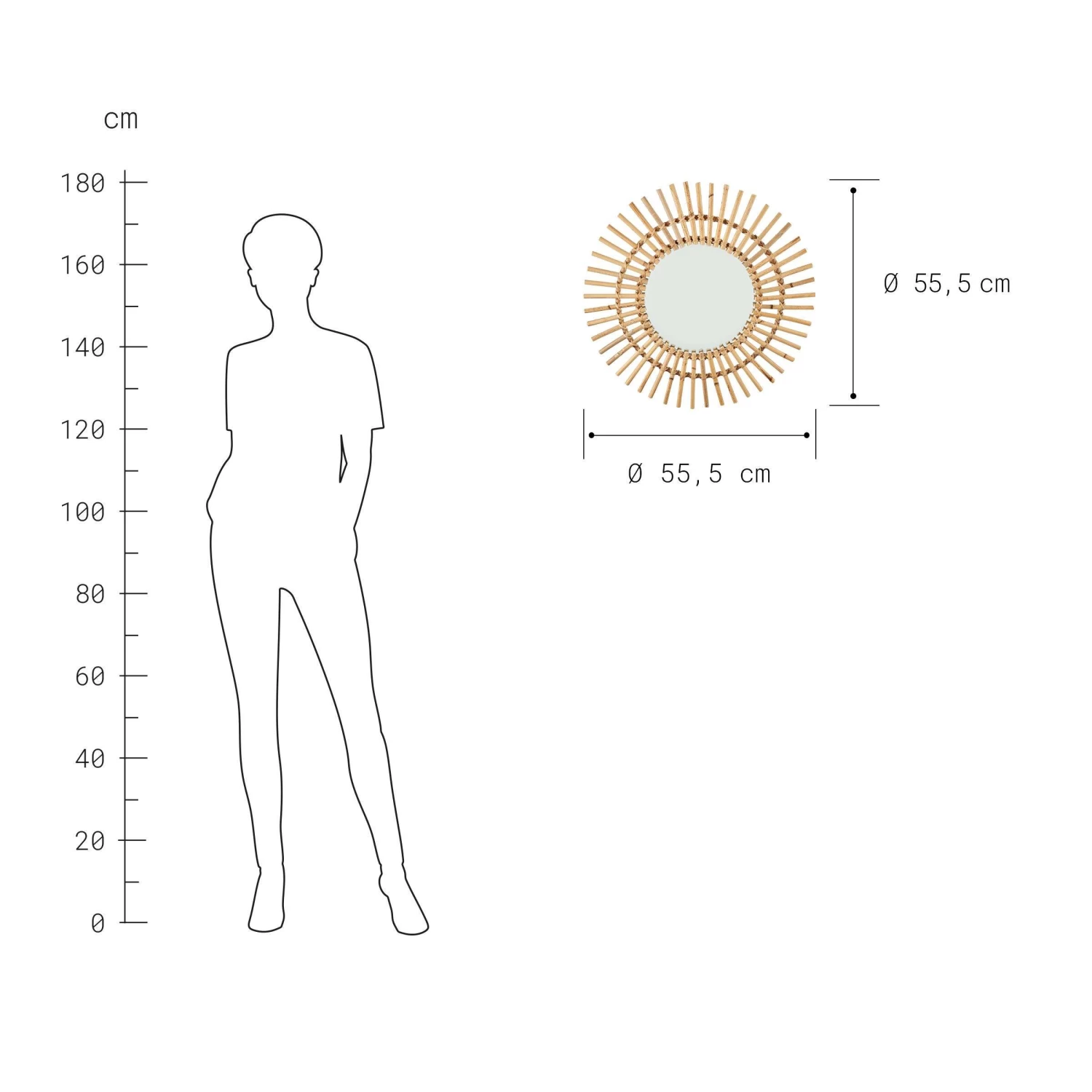 Spiegel Sonnenförmig Ø56cm COTTAGE In Natur